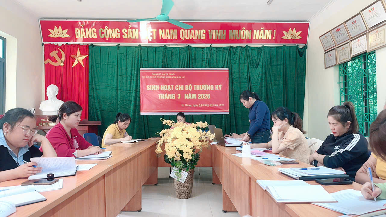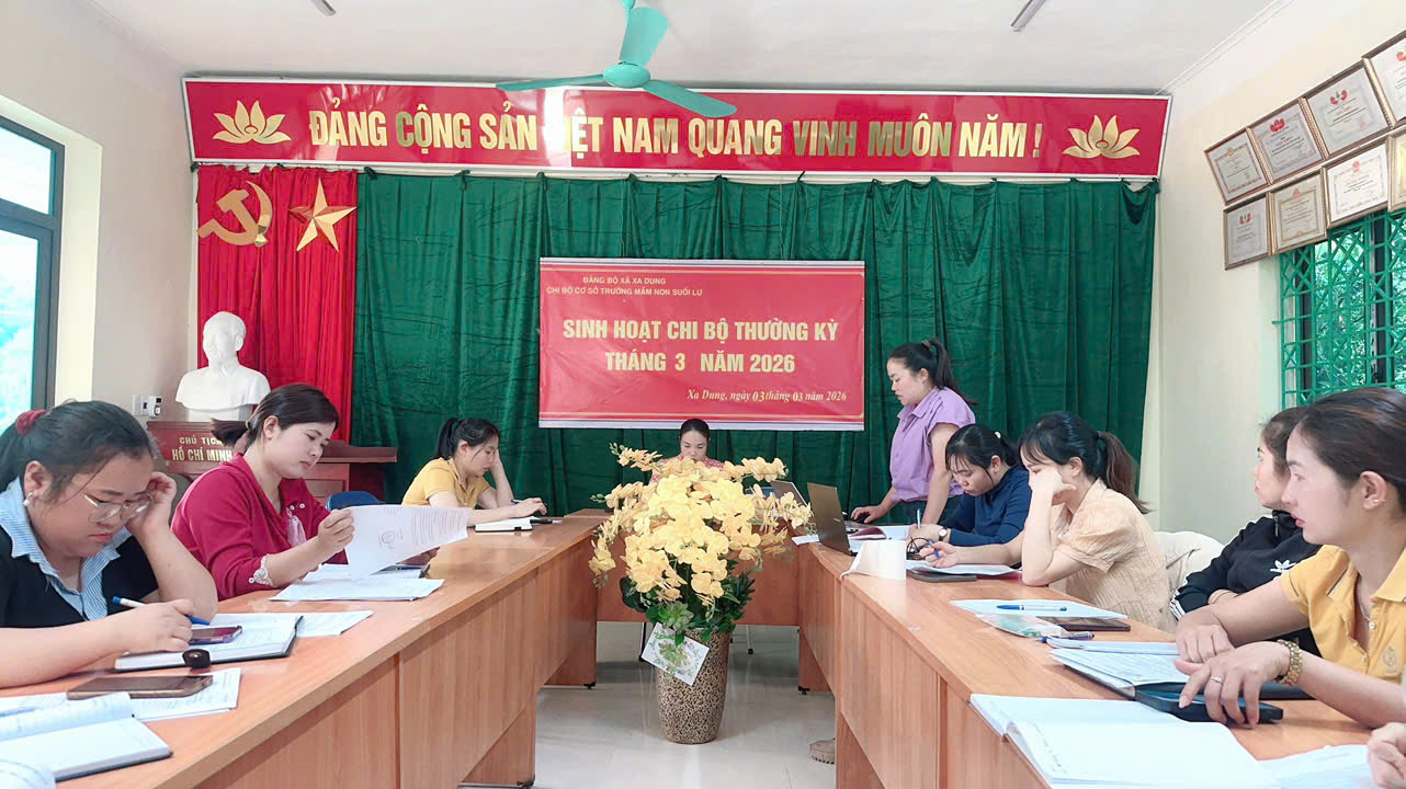 Buổi sinh hoạt Đảng thường kỳ tháng 3/2026 của Chi bộ Trường Mầm non Suối Lư diễn ra đúng quy định, đảm bảo nội dung, phát huy tinh thần đoàn kết, trách nhiệm của mỗi cán bộ, đảng viên, quyết tâm hoàn thành thắng lợi nhiệm vụ chính trị quý I và năm học 2025 – 2026./.