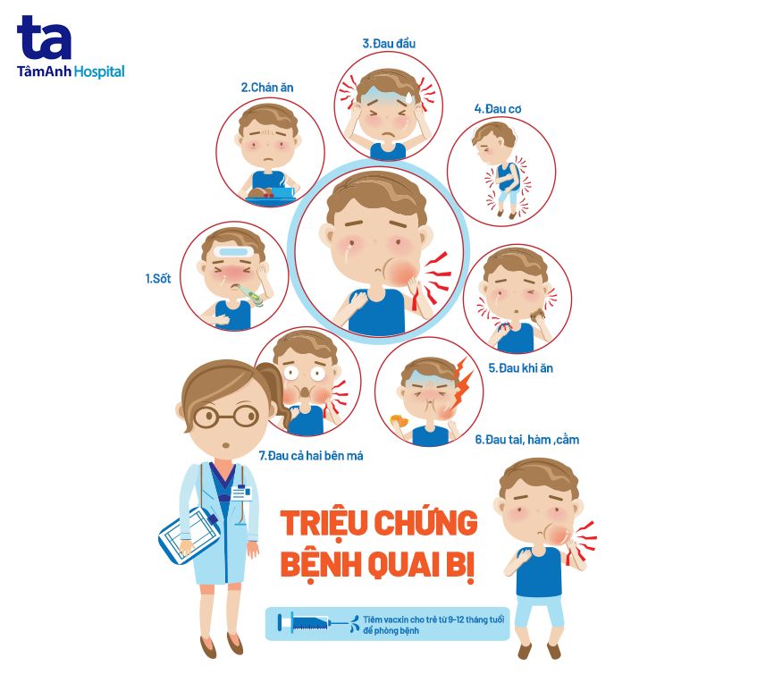 Quai bị là bệnh truyền nhiễm do vi rút gây ra, thường gặp ở trẻ nhỏ. Bệnh lây lan qua đường hô hấp khi trẻ ho, hắt hơi, nói chuyện hoặc tiếp xúc gần với người mắc bệnh.